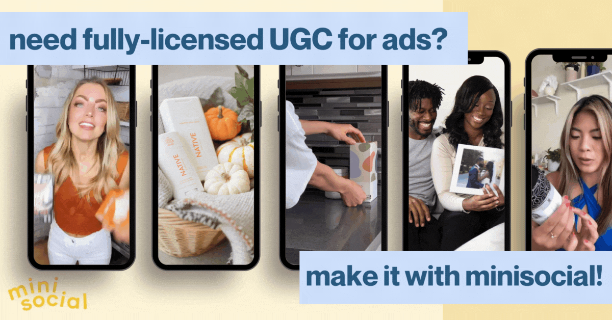 Enter: minisocial, a user-generated content platform that pairs brand sup with micro-influencer creatives who produce scroll-stopping UGC that you can take and plug-in across ALL your marketing channels.