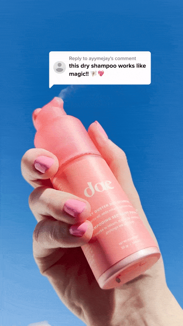 But how do they make sure the right people are watching it? The TikTok comment. That’s the real sauce here, it tells you what the product is and will entice the target demo to carry on watching. Then the captions on the screen tell them why Dae is the better option for them when looking for dry shampoo.