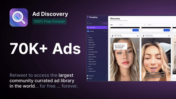 People have saved over 70,000 ads with Foreplay, making our new Discovery feature the largest curated ad library in the world 🌎