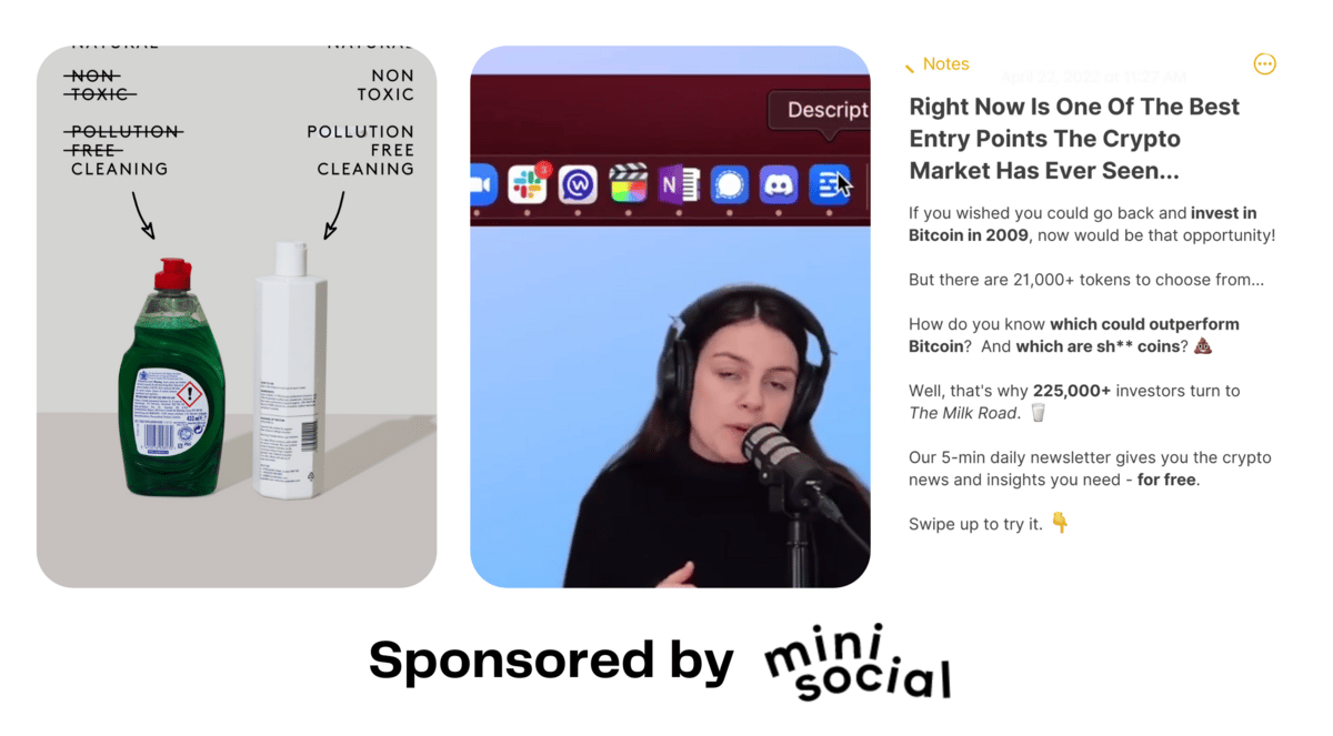 Enter: minisocial, a user-generated content platform that pairs brand sup with micro-influencer creatives who produce scroll-stopping UGC that you can take and plug-in across ALL your marketing channels.