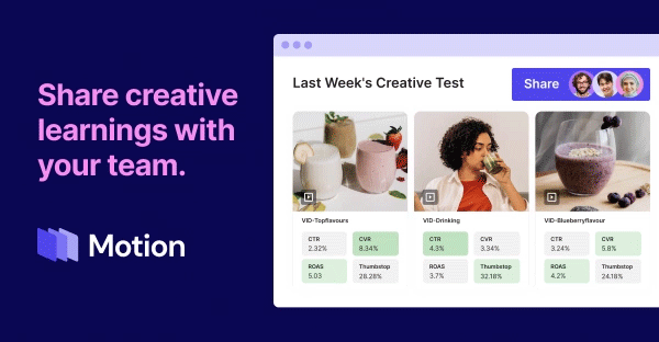 We can all agree that creative is a passionate art, but differences in opinion can be quickly resolved by removing the emotional element. You can share creative visibility across your team and empower your next creative ideation with Motion.