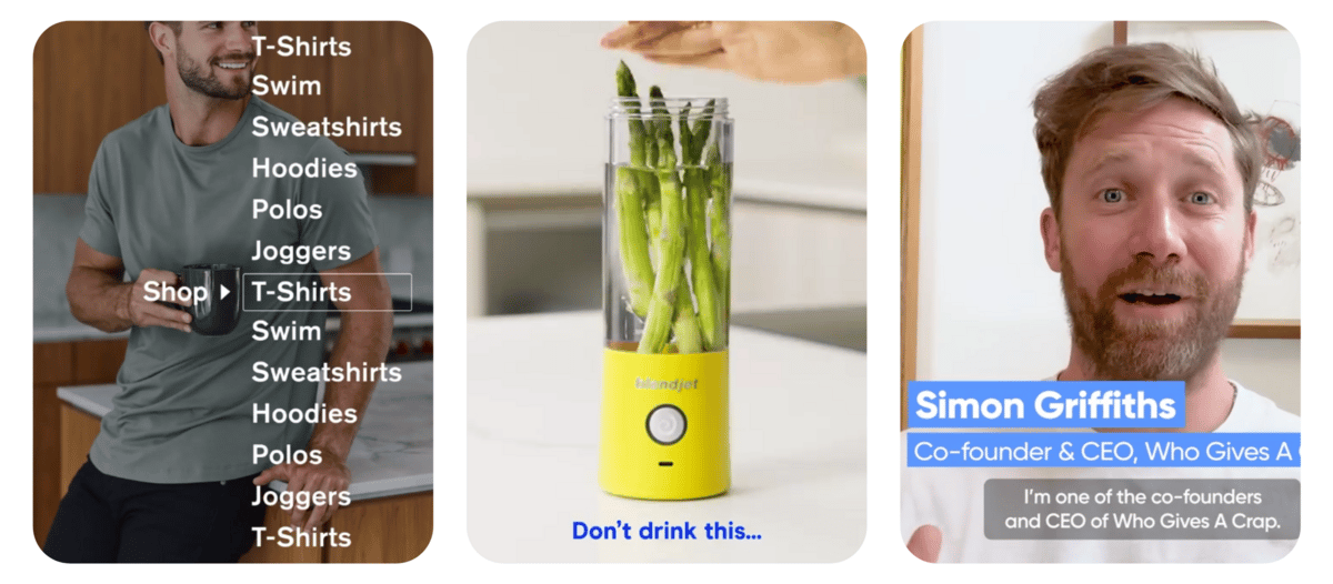 Well, you need an angle, and a reason for the video to be made. In this example from Cuts, the angle is clear. Show the range of clothing you can buy from one place. How do you put that into action? A carousel of clothing styles with images that we cycle through. Now you have a video that stands out from the feed, has a reason to exist and was made from content sitting on your google drive.