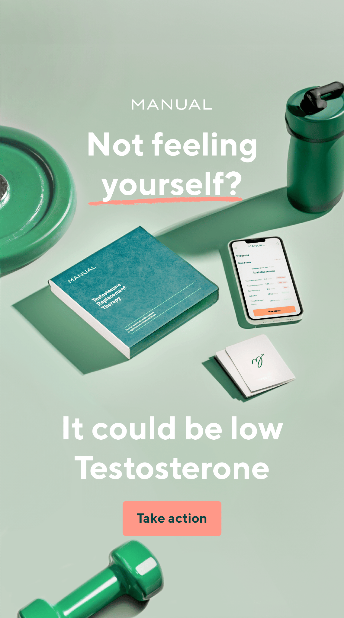 Manual has done this well, they’ve called out a problem that the scroller could be having “Not feeling yourself?” and then giving a solution “It could be low Testosterone” and right below that, they’ve got a button saying “Take action”. It’s all very simple, but when put together you can see how this would cause someone to click away from the platform to their website.