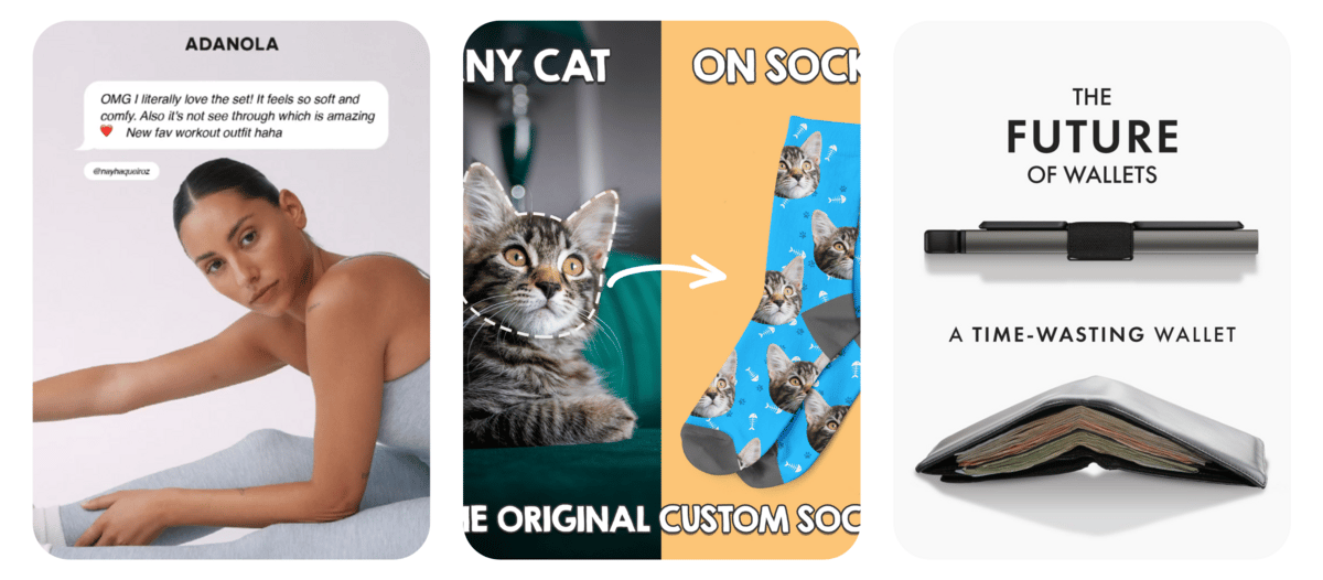 Few reasons I picked this creative today. The first one is... LOOK HOW CUTE THAT CAT IS. The second is the way they are demonstrating the product and how it works. This can be hard for a service-based business or Print-on-demand like PupSocks.