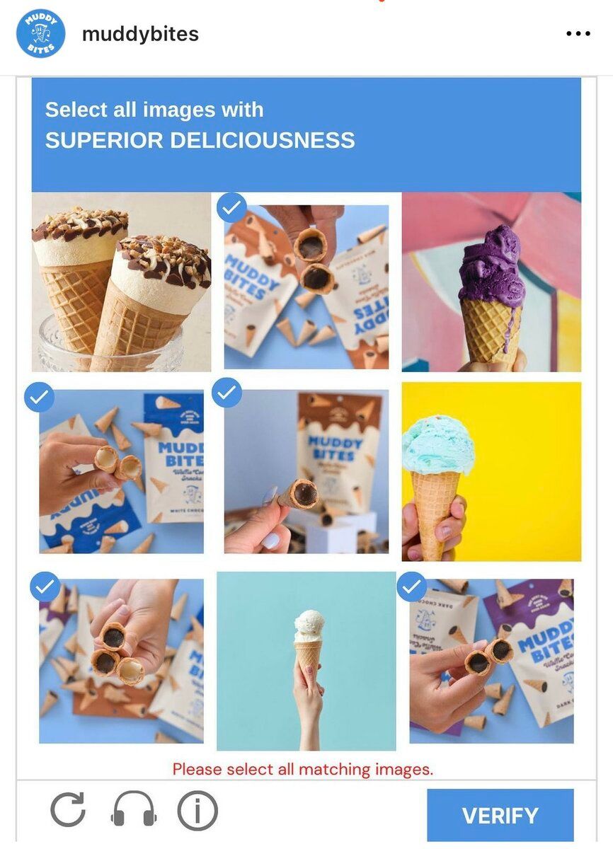 However one of the core reasons I think this makes a great creative is how seamlessly the product is woven into the ad creative - It informs us all about the product, while still being entertaining. You leave the image knowing what MuddyBites are and that they claim to be ‘Superiorly Delicious’ Sounds good to me 🤤