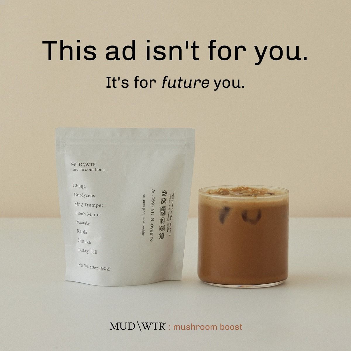 As well as copy we should always talk about the aesthetic of this creative. MUD/WTR is a very clean and modern-looking brand, you get this vibe right away from this static. No fuss, just product. It looks and feels very on-brand.